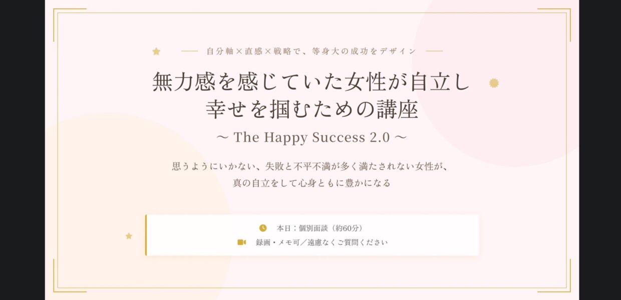 無力感を感じていた女性が自立し幸せを掴むための講座